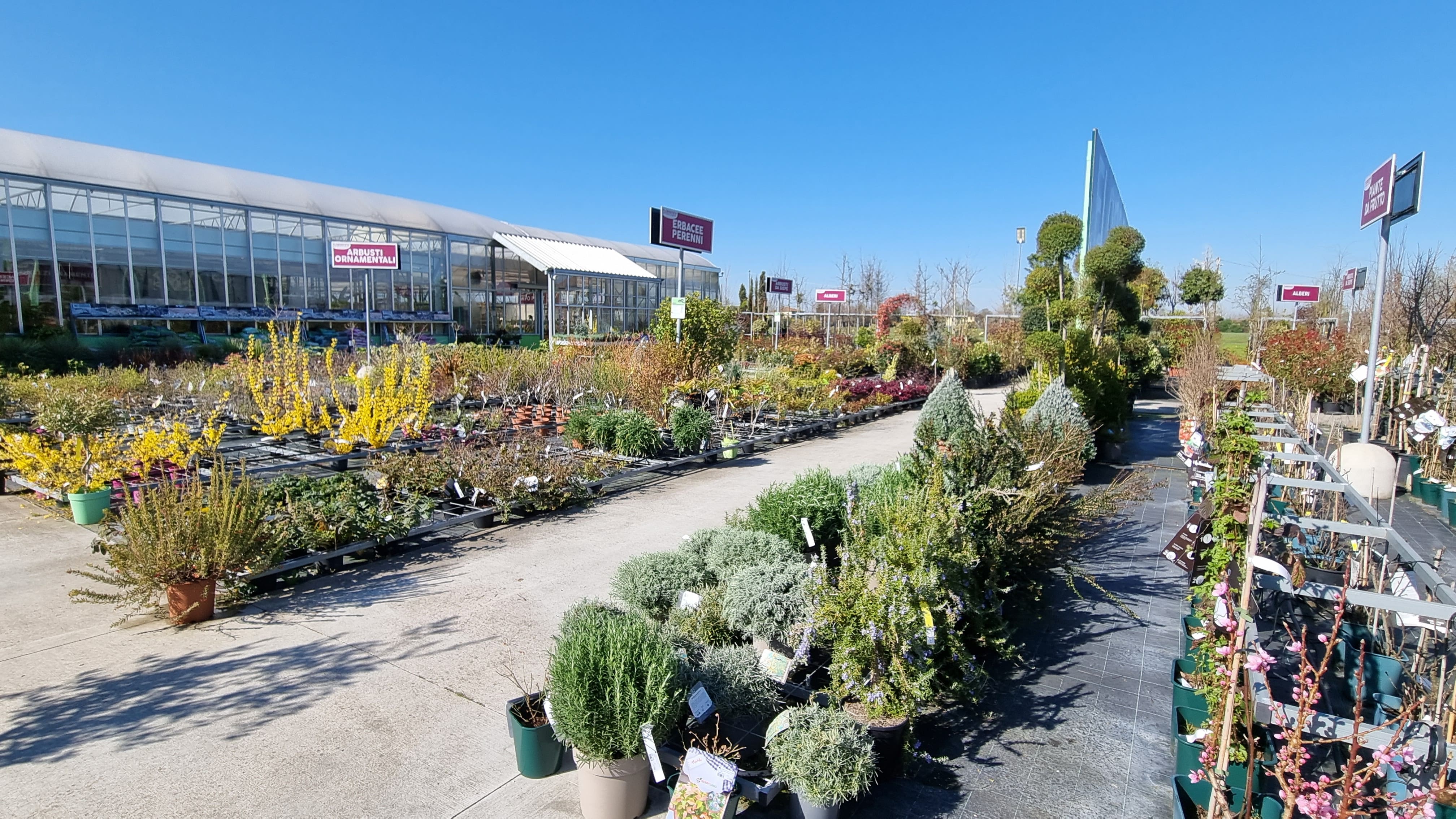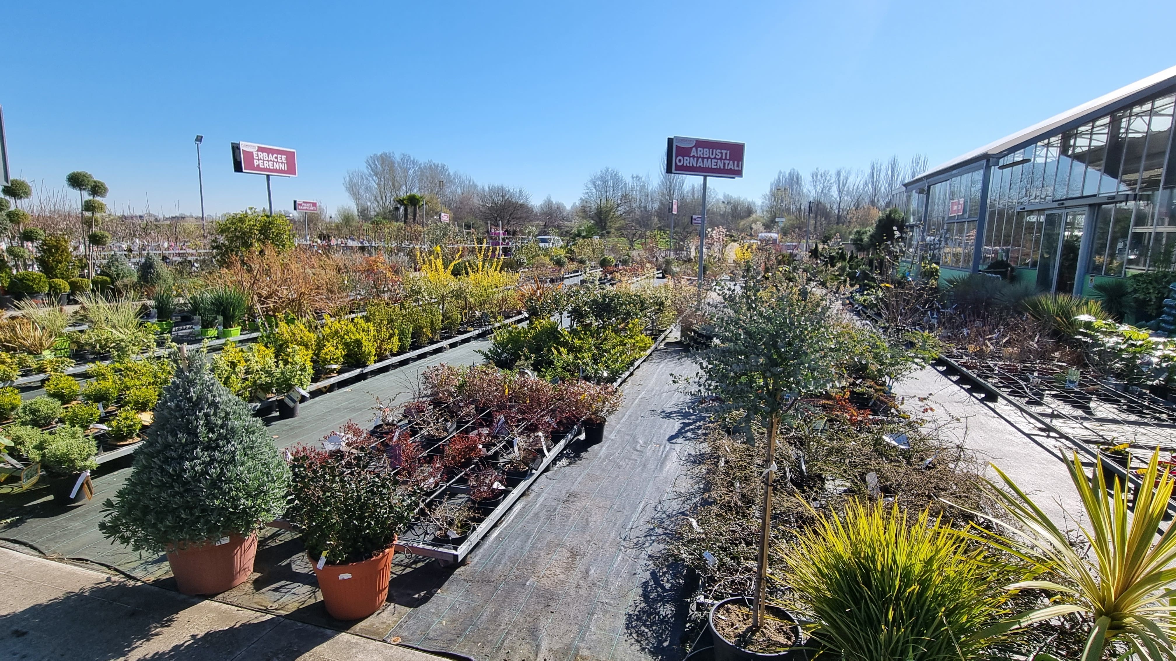L’area esterna del nostro Garden Center a Lovoleto offre un ampio assortimento di piante arbustive, alberi, rampicanti, piante